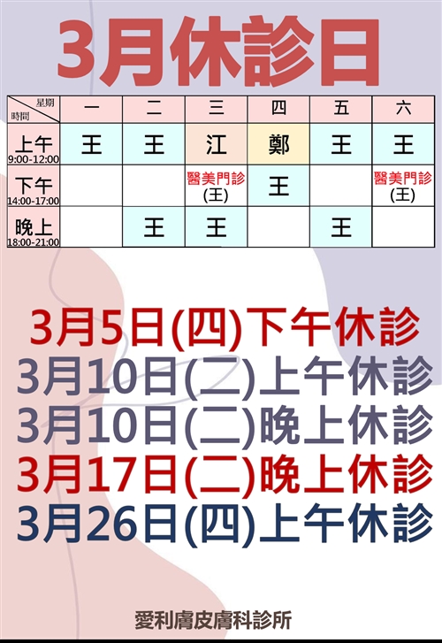 • 2026-03-01 3月休診時間